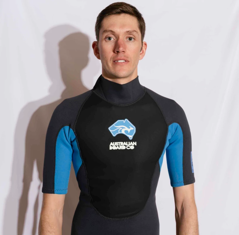 Australian Board Company Pulse 3/2mm Mens Back Zip Shorty Wetsuit in Black/Blue