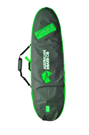 This quality surfboard travel bag from the Australian Board Company is a great option for protecting your favourite surfboard. These bags use quality materials and construction to ensure they are built to last and deliver protection when you need them. The padded handle and shoulder strap make carrying your board easier. The 5mm thick high-density foam padding and tough outer fabric offer protection when storing or travelling with your surfboards.