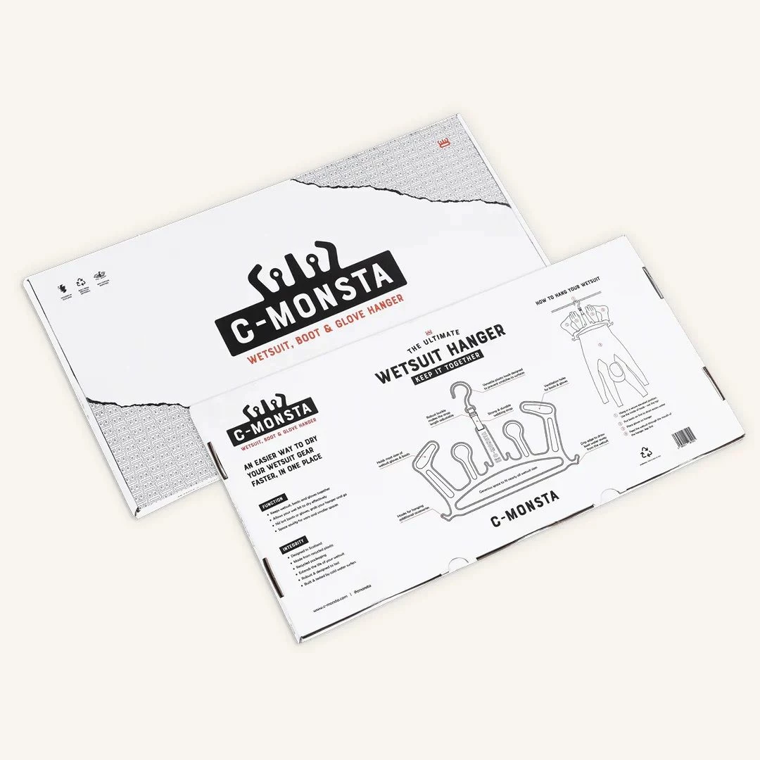 Every c-monsta is injection molded from recycled plastic and shipped in a recycled cardboard box. This helps reduce our manufacturing impact on the planet and reduce waste by helping your wetsuit gear last longer.