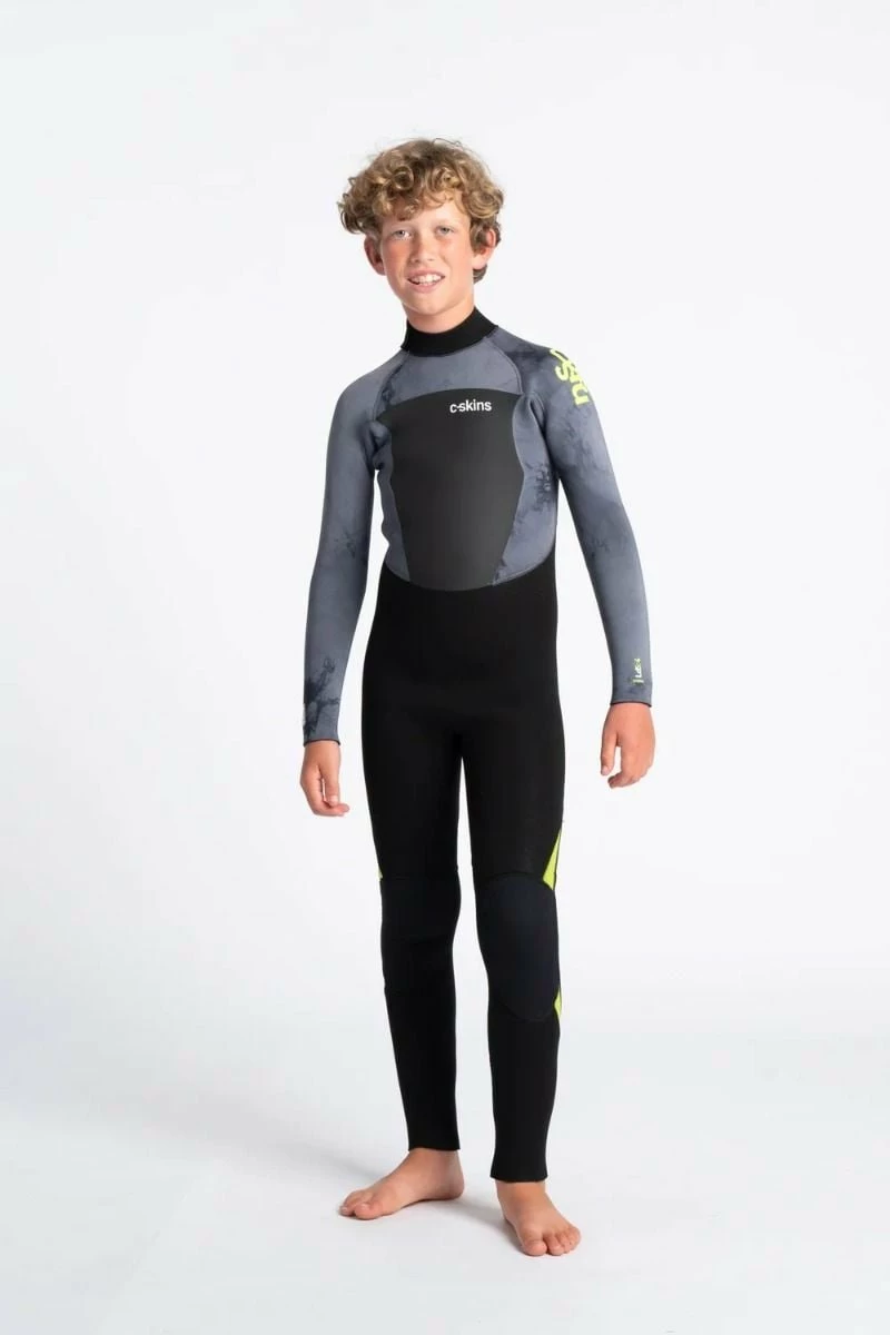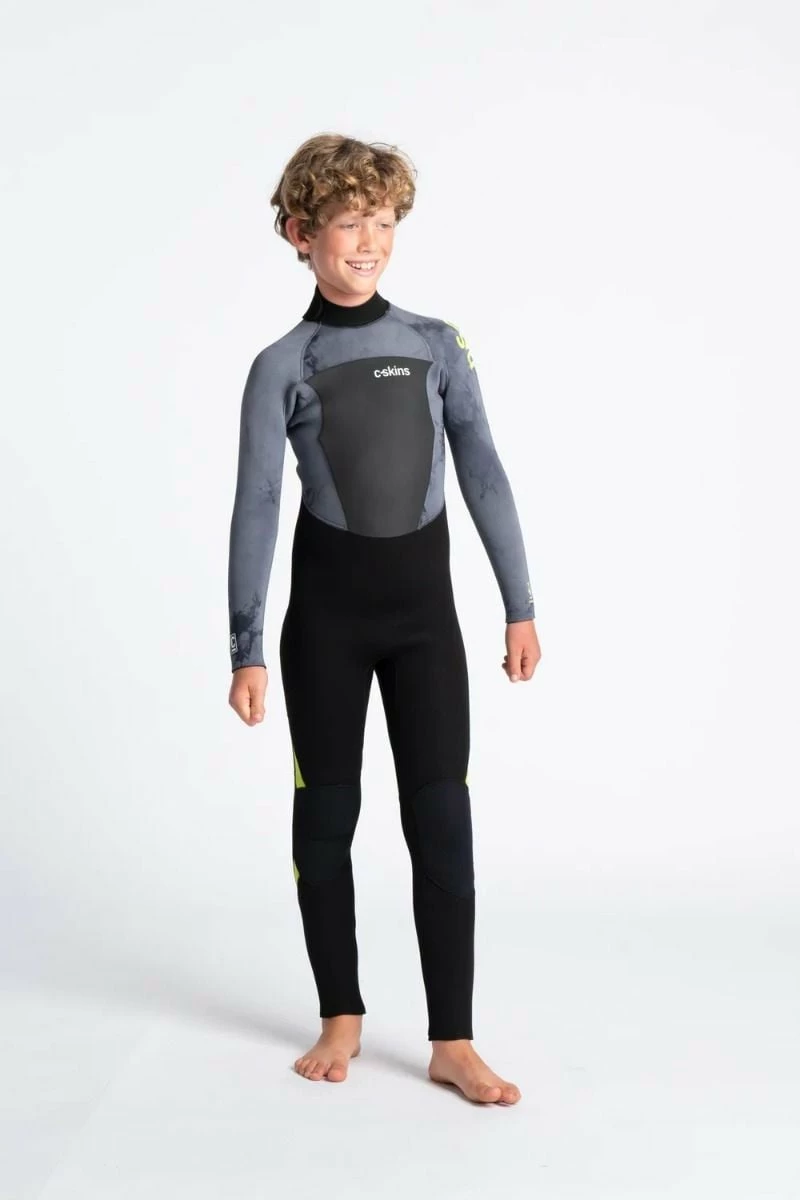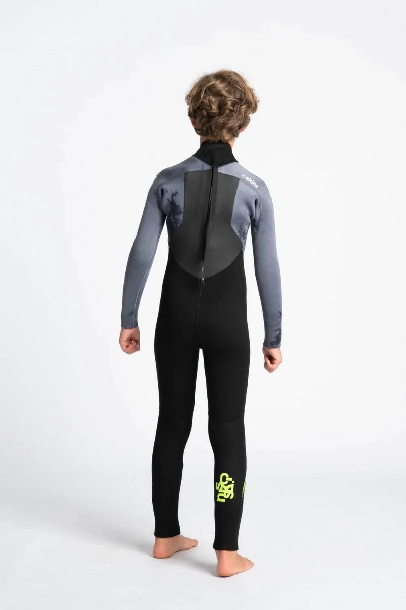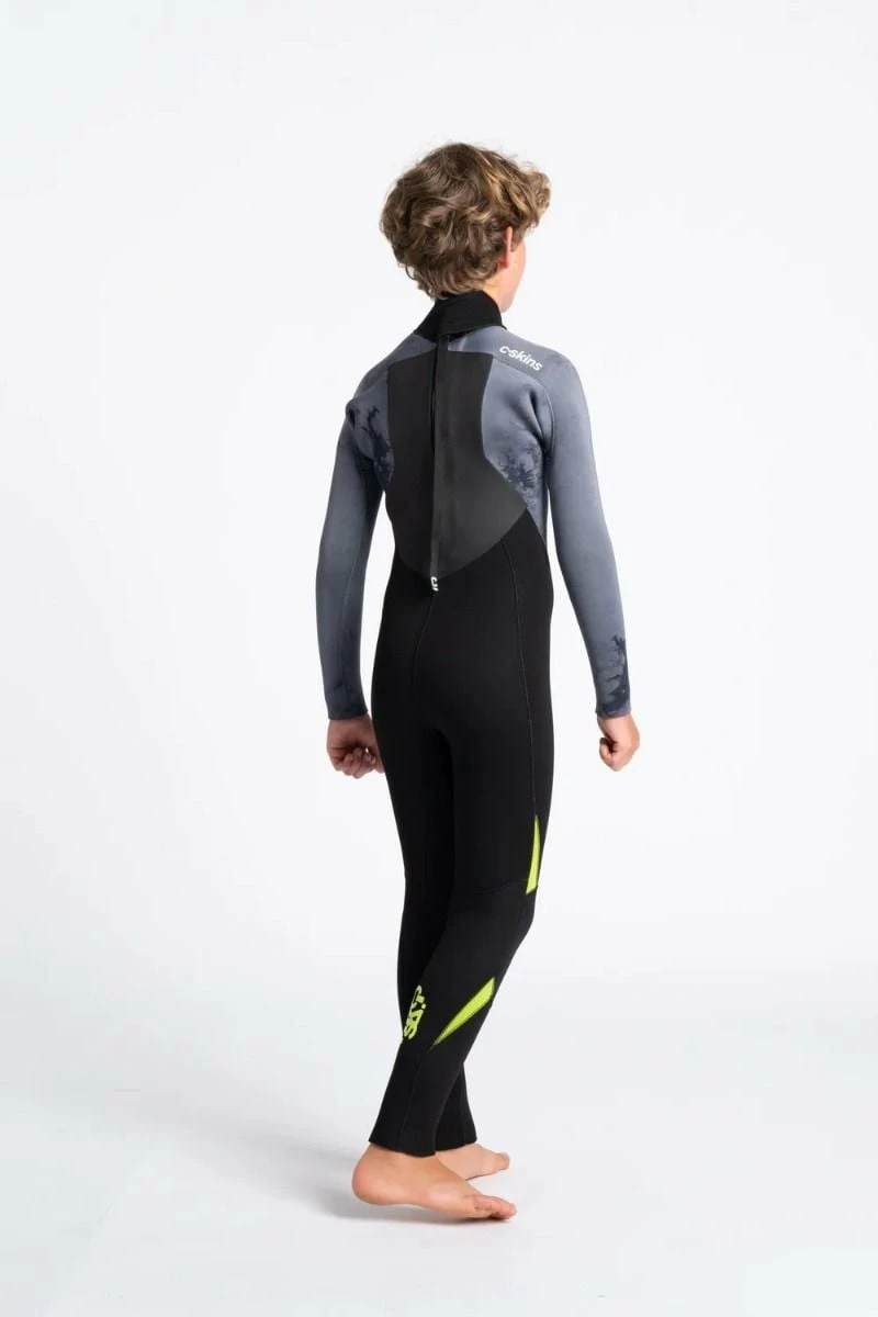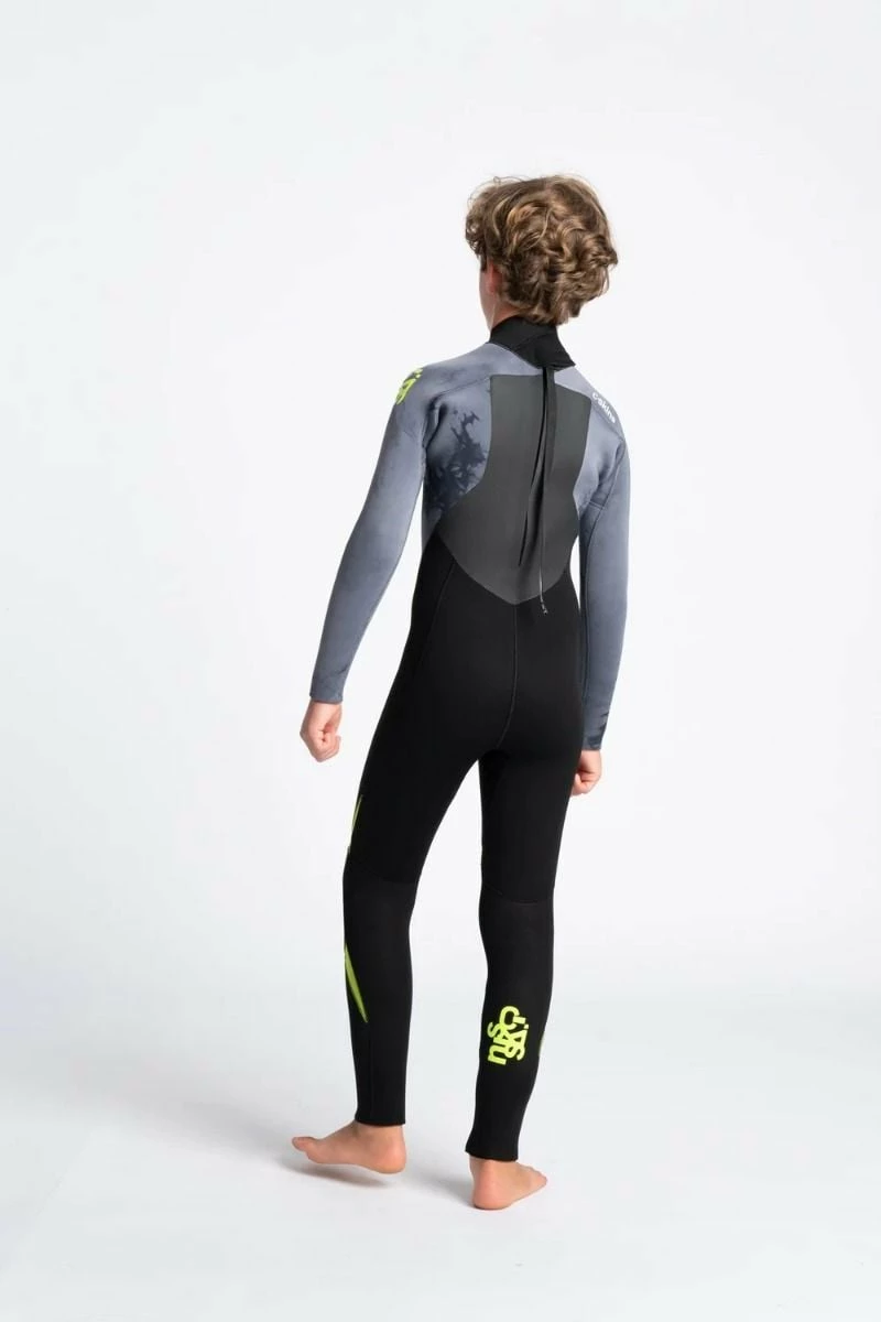 C Skins Legend 5/4/3mm Kids Warm Back Zip Wetsuit in Black/Tie Dye/Lime