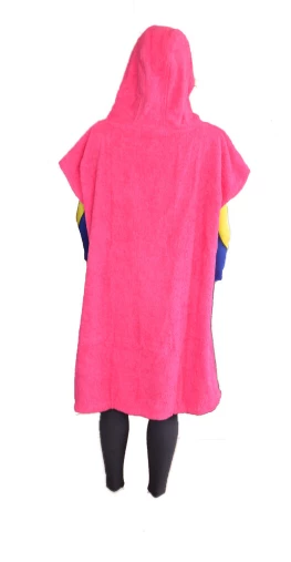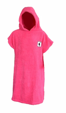 The Circle One hooded towel-changing robe is the perfect beach and pool accessory for your kids this summer. A great way to warm up after a surf or swim in the sea. Just throw it on, get changed underneath it, or wear it home. This towel-changing robe is made with good quality, soft, and thick toweling material to keep your kids warm and dry them quickly. The hood is big and cosy and they are designed to be a relaxed fit so you can get changed underneath them. Come in navy or pink color options. They come in one size which in their experience fits roughly from age 7 – 13. On smaller children, the fit will be baggier and longer.