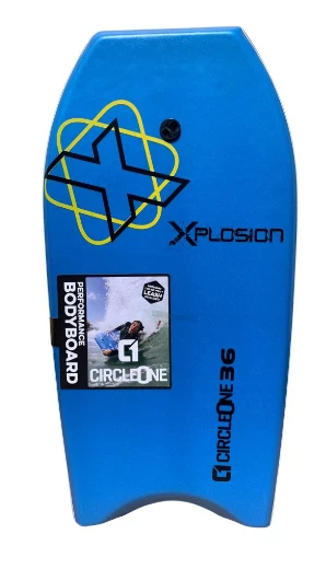 The Circle One Xplosion EPS performance bodyboard range is their Premium performance bodyboard option and is ideal for the beginner/progressive bodyboarder looking to push on and improve their technique. The classic crescent tail shape and graduated bottom channels allow for optimum water flow underneath the board and increased hold on the wave. Constructed using a high density pressurised EPS core, open cell IXPE skin, and thick 1MM HDPE slick, the board does not compromise on features. Premium quality coiled polyurethane leash also comes as standard. Whether you’re looking to get a bit more serious with your bodyboarding or just prefer a premium option – the Xplosion is the board for you.