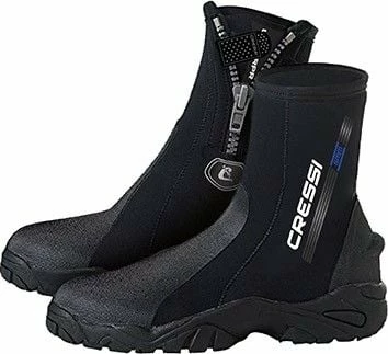 These boots have been designed to be used with open-heel fins as they have been constructed using soft 6mm nylon-lined neoprene and are perfect for colder water activities. They have been constructed using reinforced PU protection for instep. The heel provides resistance against wear and tear and the notch for holding the fin strap is integrated into the heel. A practical YKK zipper opens at the ankle for easy donning and water seepage is reduced to the minimum thanks to a protective thin flap hydro seal under the zip. The Cressi personalized ankle strap has a Velcro in the inner part and a rigid, non-slip and hi-grip moulding covers the entire sole. These boots are super stylish and extremely protective.