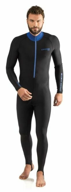 The new Cressi 1mm Men’s Monopiece Skin Wetsuit has been crafted from a thin material (86% Polyester / 14% Spandex), the Skin is a versatile and a must-have full suit for traveling divers.