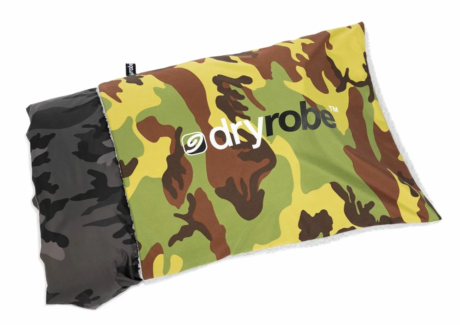 Simply pack your change robe into the dryrobe® Cushion Cover to transport it conveniently and/or use it as a travel pillow. The outer is lined with ultra-soft synthetic lambswool for comfort on one side, and water-resistant shell fabric on the other to protect it when used on wet or dirty surfaces.