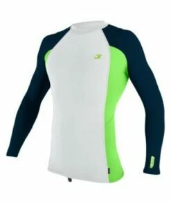O’Neill Premium Skins Long Sleeve Men’s Rash Guard Top in White/Dayglo/Abyss