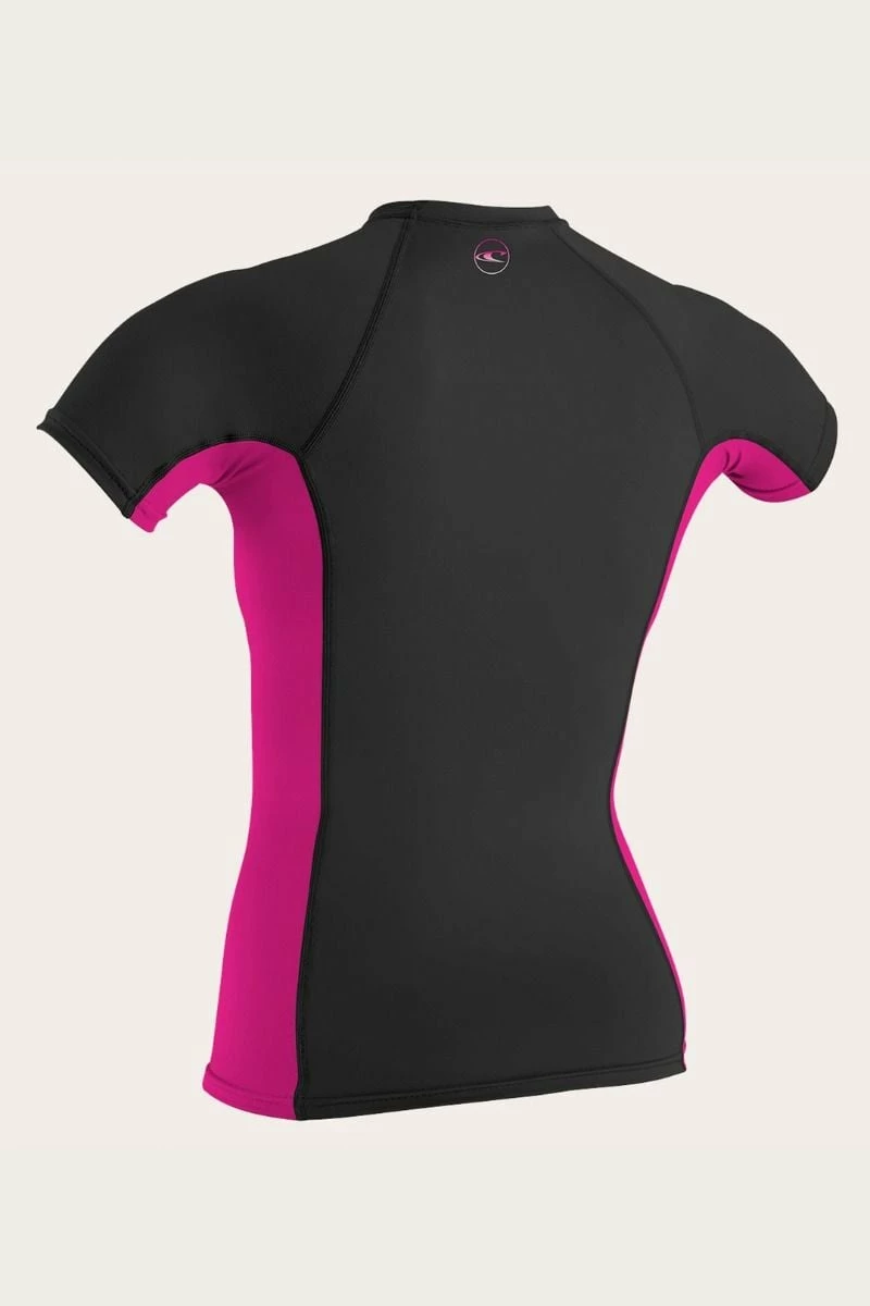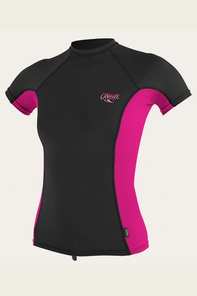 O’Neill Ladies Premium Skins Short Sleeve Rash Vest in Black/Berry Pink