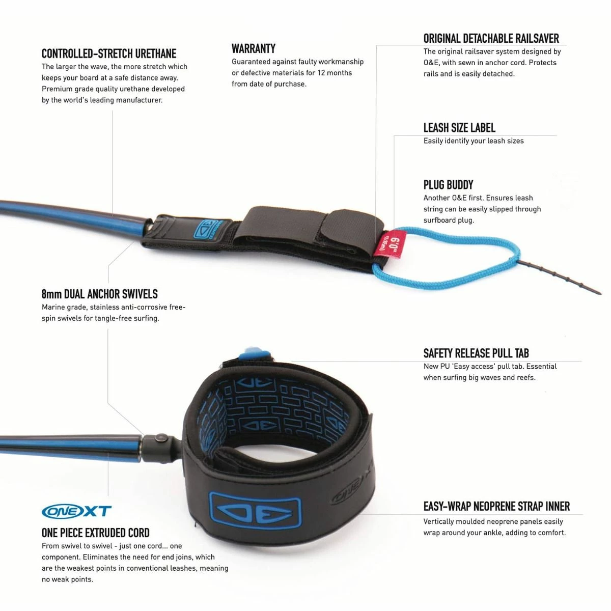 Ocean & Earth 6ft One-XT Premium Surfboard Leash in Blue/Black | 2021