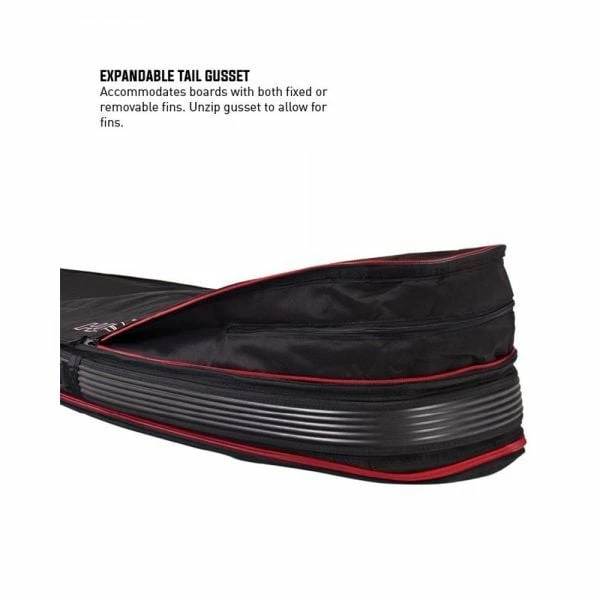 Accommodates boards with both fixed or removable fins. Unzip gusset to allow for fins.