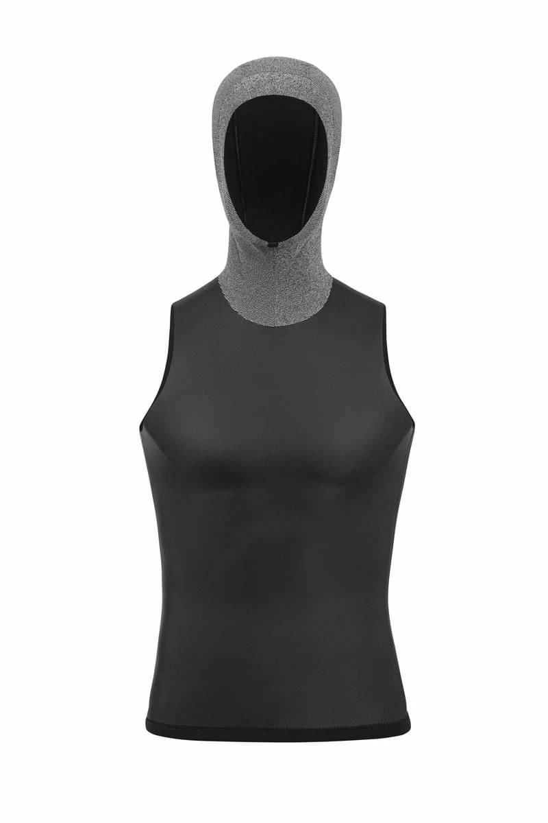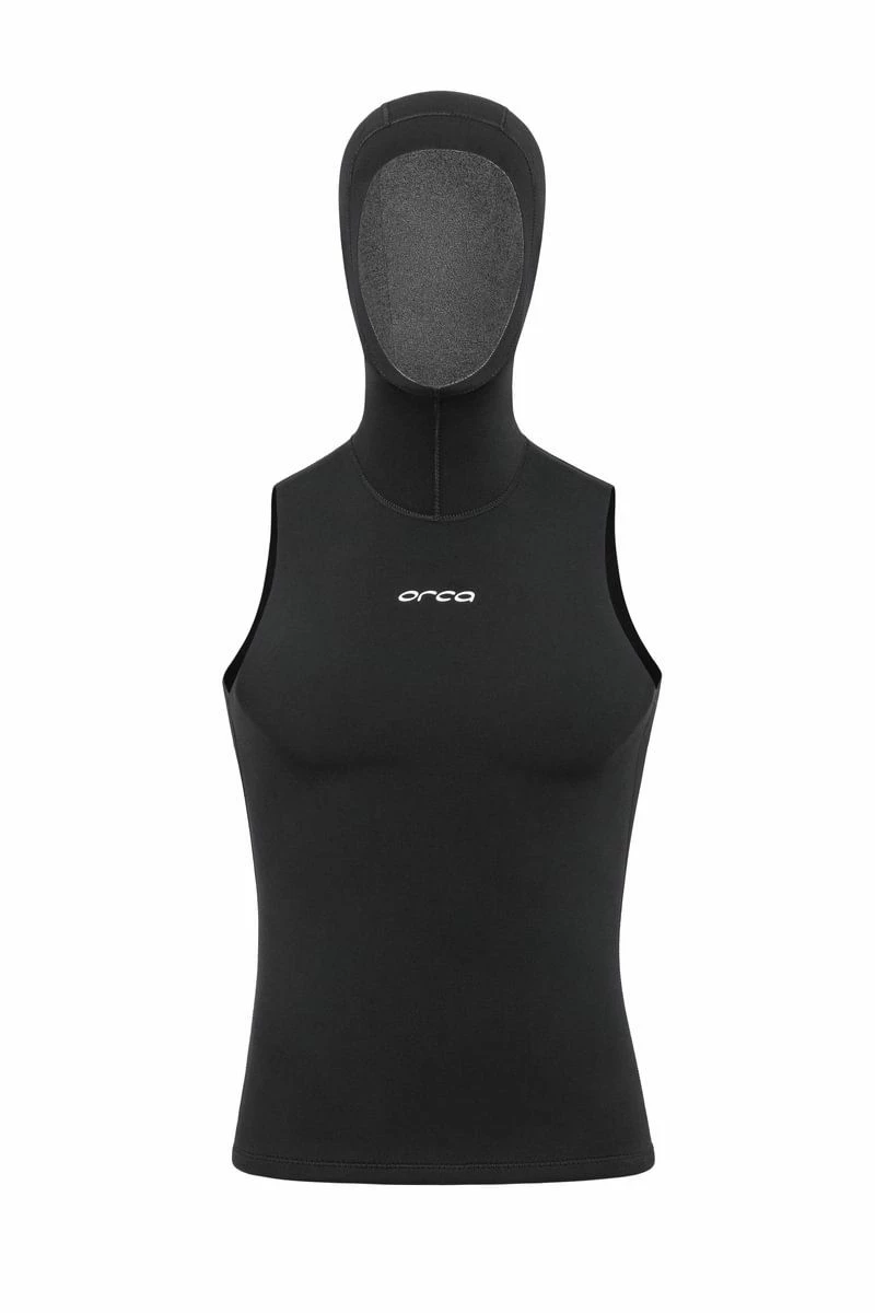 This 3 mm-thick neoprene vest with a built-in thermal hood can be worn underneath a regular wetsuit to make cold water swimming safer and more comfortable.