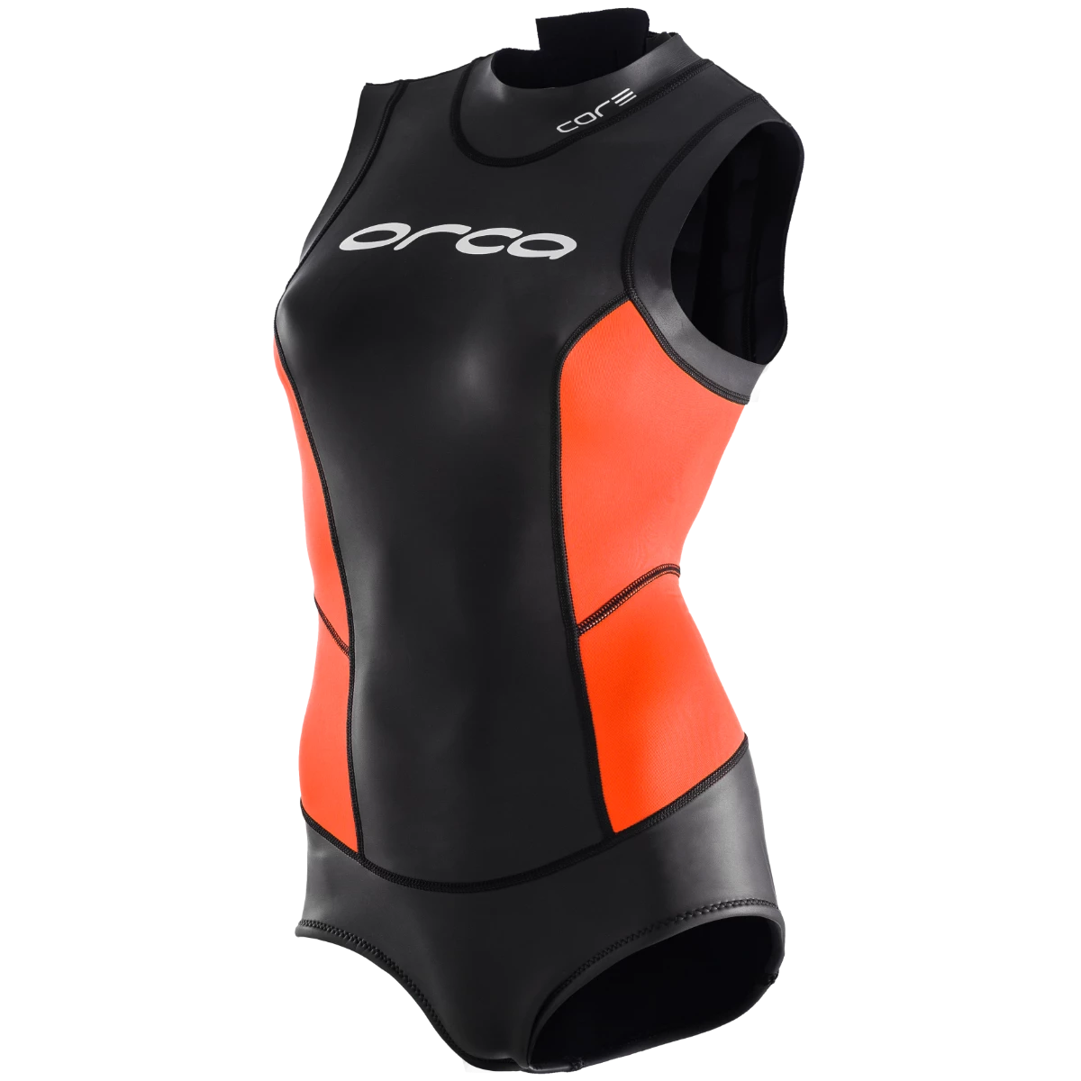The new Orca Perform Womens Open Water Shorty Wetsuit is the perfect combination of safety and technology. An open water wetsuit with built-in technology that will increase the level of safety for swimmers at sea. It features high visibility orange stripes as well as quick drying materials. The high visibility orange used in the design will make it easy to locate you at all times, so you can feel safer swimming out in the open water. The suit also has great support, with thermal insulation and a slightly thicker neoprene by the abdominal area which will provide the thermal insulation you need, helping you maintain an ideal body temperature throughout your journey. Ideal for racing, causal training and more! A versatile suit that offers flexibility like no other due to the sleeveless feature. A great suit for summer and spring training conditions indoor or in the open water.