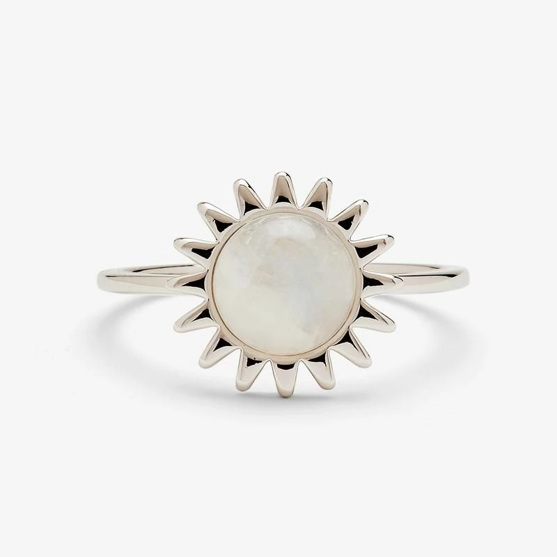 Girls just wanna have sun! Set on a silver finish, this sun design shines bright with moonstone stones. It is light and will ensure added style to your already amazing outfit. The sun will ensure you continue to shine throughout your adventures!