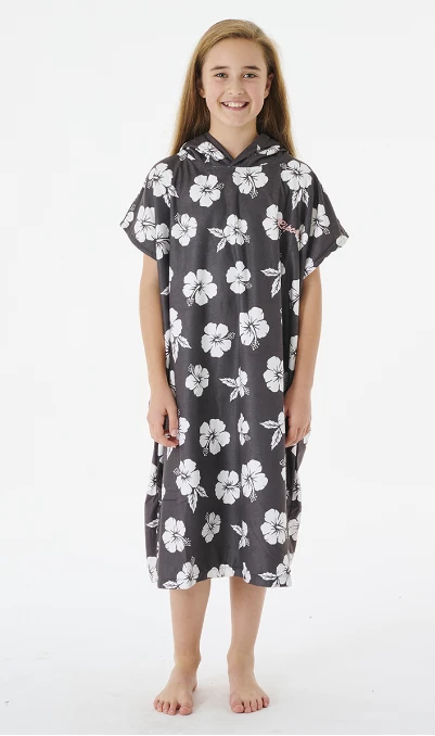 Rip Curl Desert Waves Grom Girls Hooded Towel Poncho in Black/White