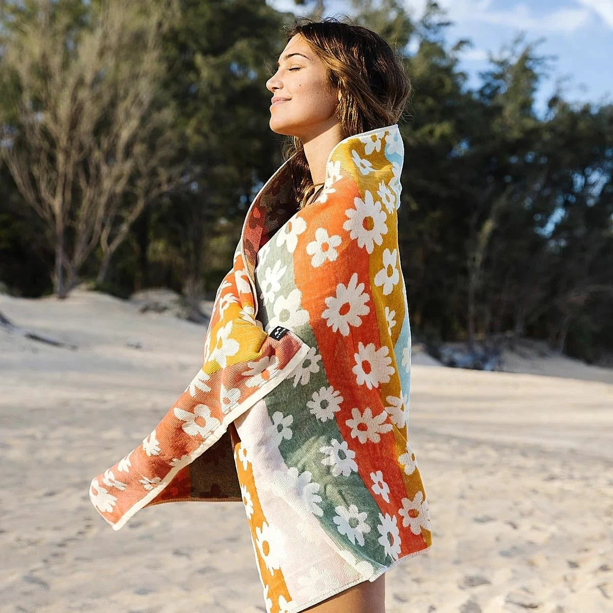 - Absorbent – 500 GSM (some extra cushion). This plush towel is thicker than a traditional beach towel.