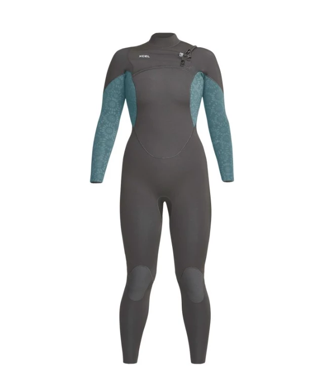 Xcel Comp 4/3mm Chest Zip Womens Winter Wetsuit in Tinfoil Flower