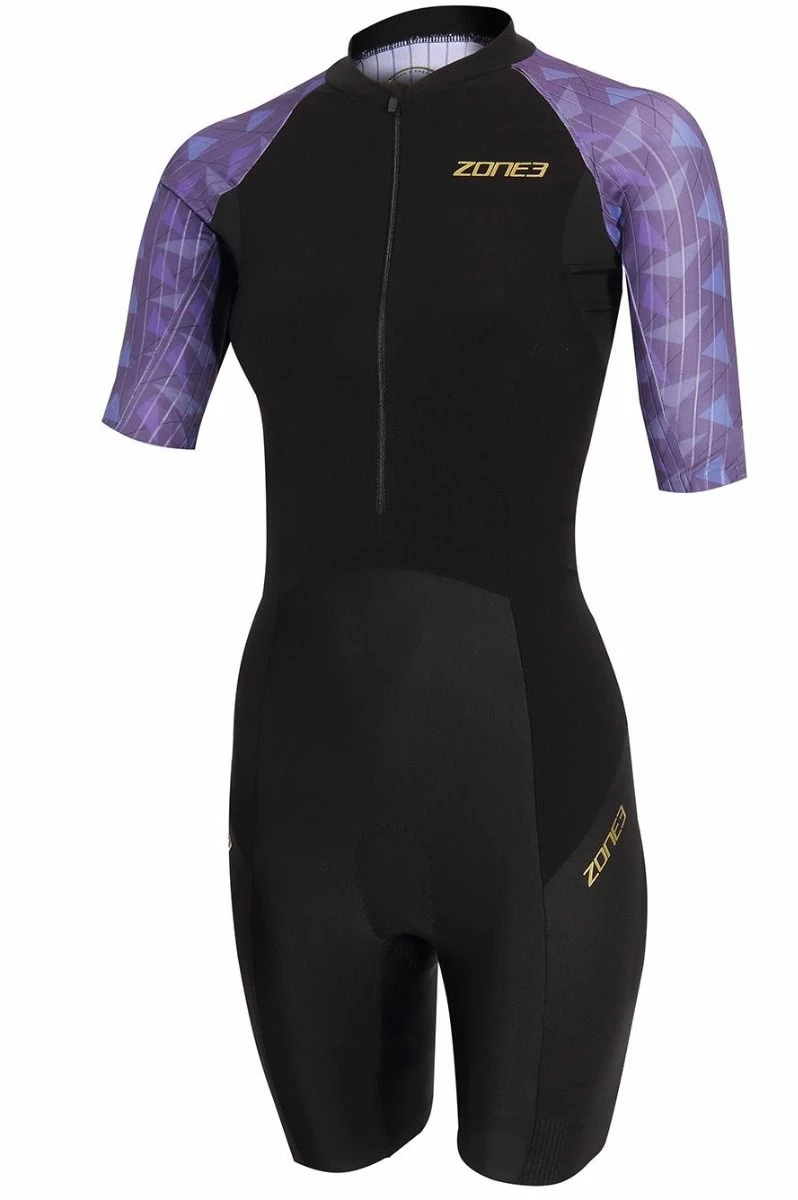 Zone 3 Lava Ladies Short Sleeve Aero Racing Trisuit in Purple/Black